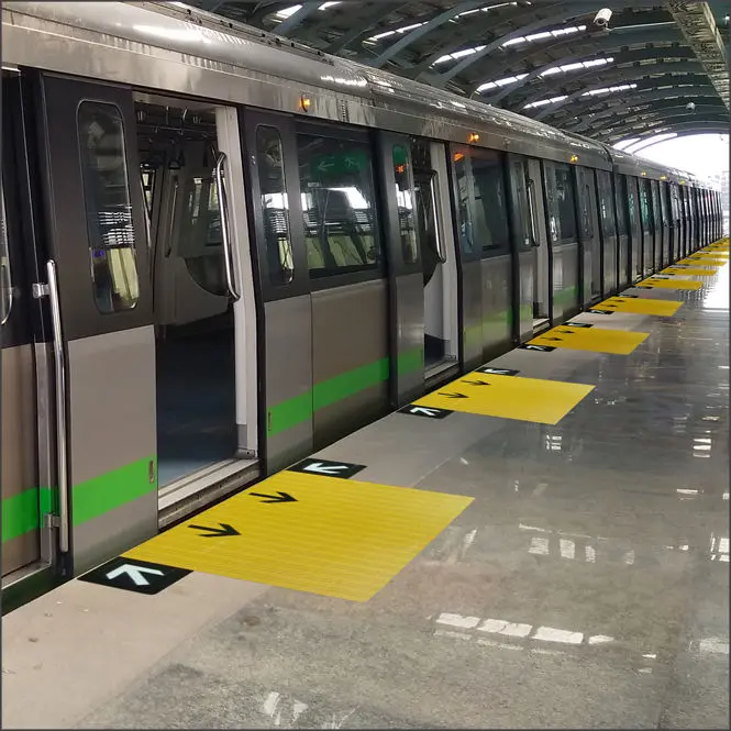 Vloerfolie kan worden gebruikt om duidelijke en zichtbare signalen te creëren, zoals pijlen, waar-schuwingstekens en richtlijnen voor passagiers. Dit helpt bij het stroomlijnen van het instap- en uitstapproces, het verminderen van verwarring en het bevorderen van een soepele doorstroming van mensen binnen het voertuig. Het verbetert ook de algehele organisatie en efficiëntie.